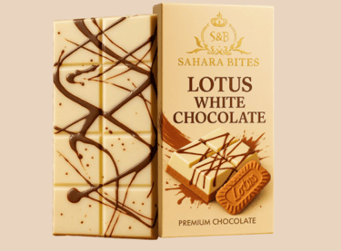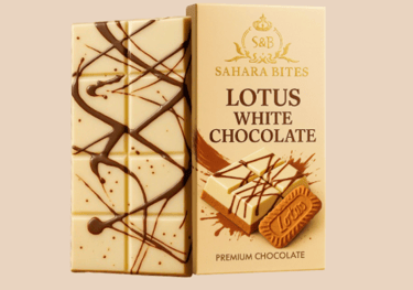 White chocolate bar blended with the warm flavor of Lotus biscuit spread and almond pieces — a sweet harmony of crunch and creaminess.